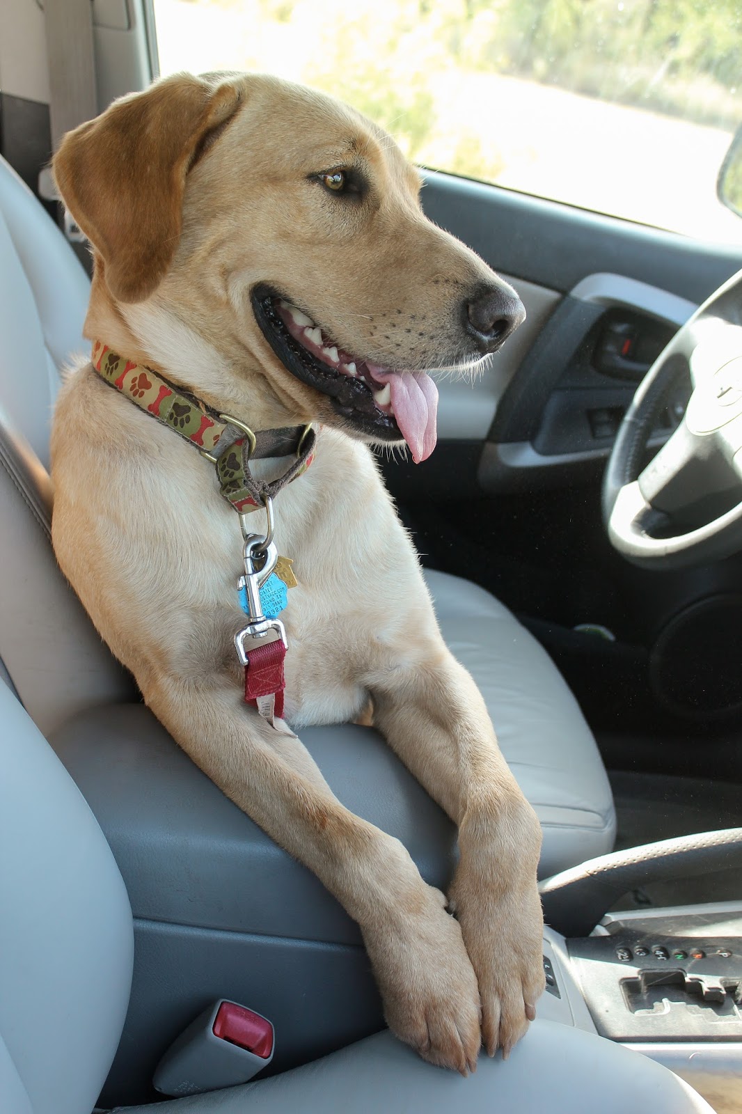 Roscoe got a little agitated towards the end of the trip. Agitated in the form of barking at every beetle and bug within eye-shot. He was inconsolable. So we put him in the car.